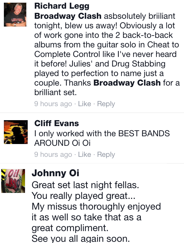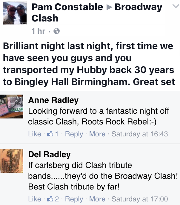 "Broadway Clash play all the greatest songs of The Clash - loud and from the heart as they were always meant to be with passion and authenticity"